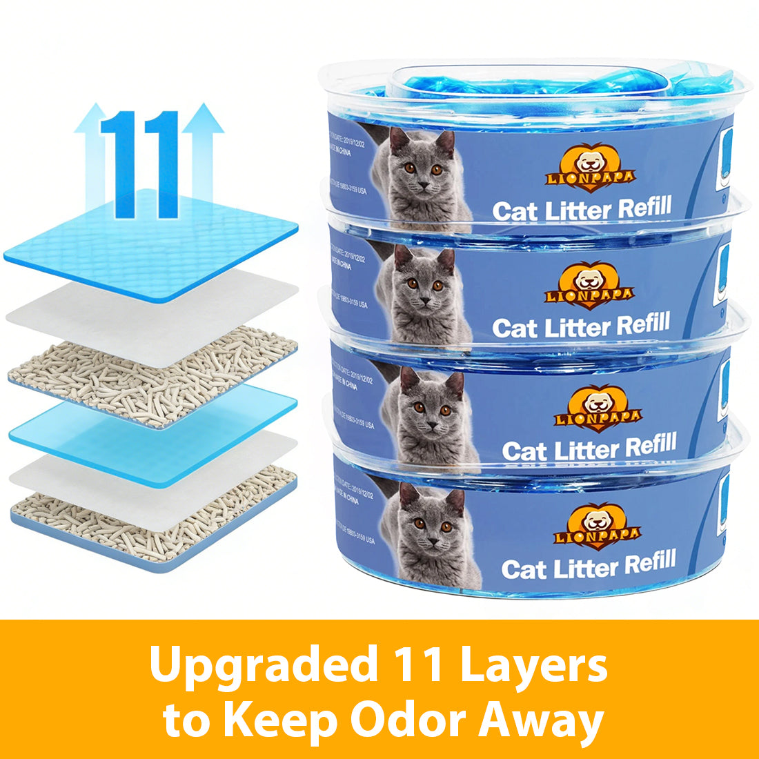 Lionpapa litter genie refill bags are composed of 11 layers EVOH materials, which make our generic litter genie refills stronger and more durable than Firik litter genie refills, target litter genie refill, choice litter genie refill and Walmart litter genie refills.