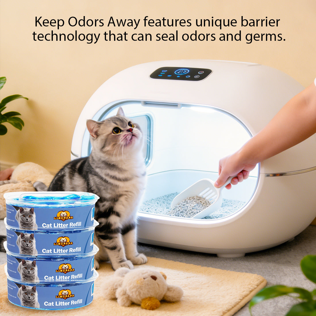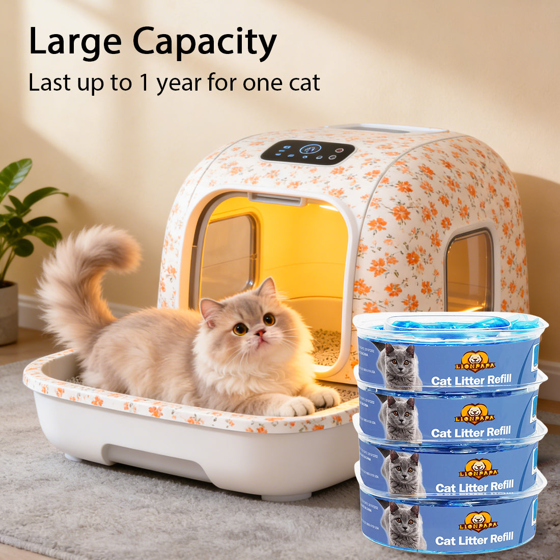 Lionpapa litter genie refill features 15 feet length in each box, which can use up to 8 weeks for your one cat, is also very suitable for multi-cat families.
