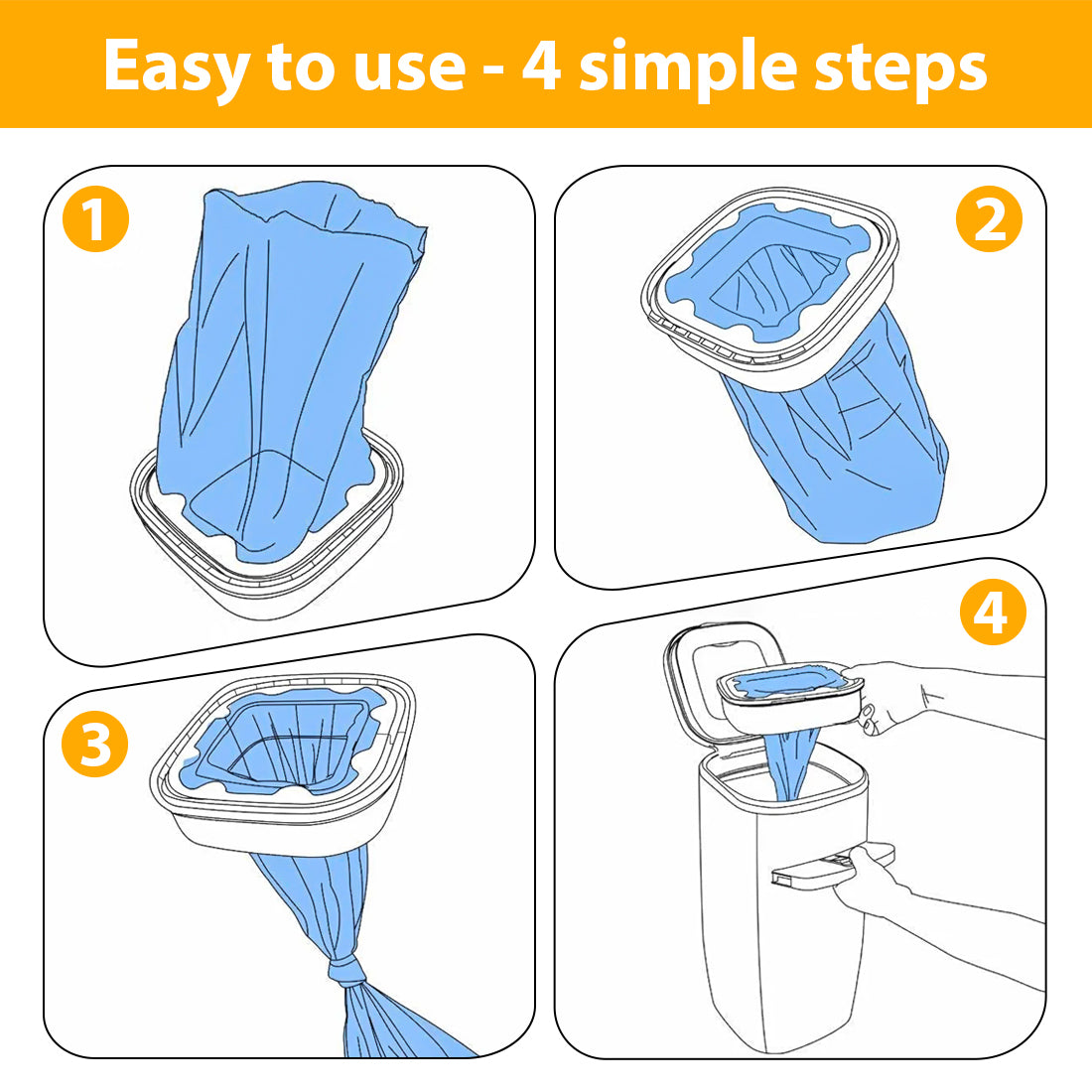 (3) Hold down pail and pull handle, air-tight design keeps smells in.